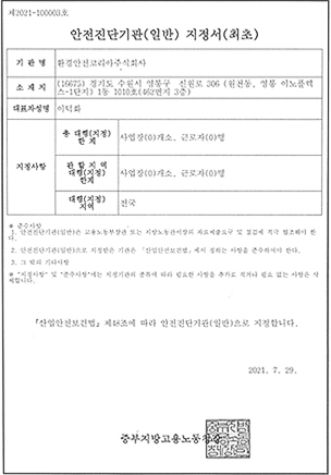 각종 위험공정 및 설비 등 산업재해 예방에 대한 안전진단을 통하여 잠재 유해 위험성과 유해인자를 도출하고 그 문제점 및 개선대책을 수립⦁제시함으로써 사업주가 자율적 안전관리를 이행할 수 있도록 기술적 자문 및 지도 지원